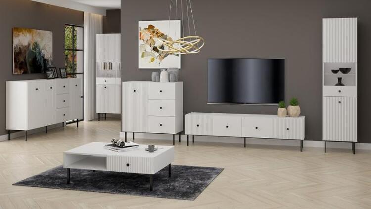 Konferenční stolek se dvěma zásuvkami v elegantním stylu, je vyroben z kvalitní LTD desky v barevném provedení bílá. Přední část nábytku je doplněna dekorem frézovaných dveří. Vysoké kovové nožky nábytku a úchyty jsou v barevném provedení černá. V naší nabídce naleznete více variant nábytku této řady. Dodáváme v demontovaném stavu.CASA 85039