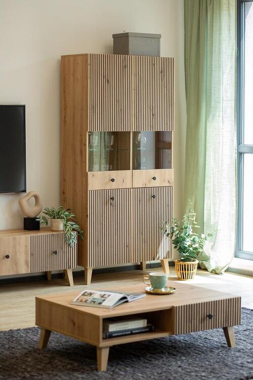 Konferenční stolek se dvěma zásuvkami je vyroben z kvalitní LTD v barevném provedení dub artisan/černá. Netradiční frézování předních částí zásuvek v kombinaci s minimalistickými úchyty a vysokými nožkami, dodává této kolekci moderní vzhled. Nabídka komponentů této sektorové řady umožňuje... více informací o zboží