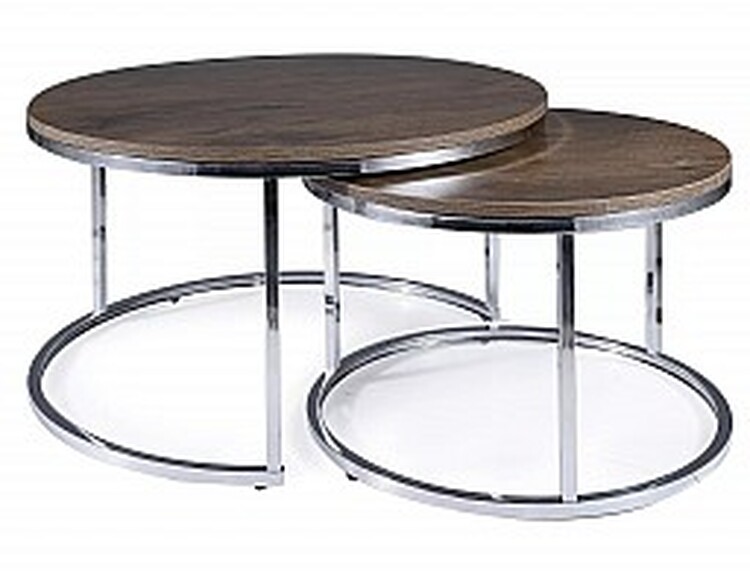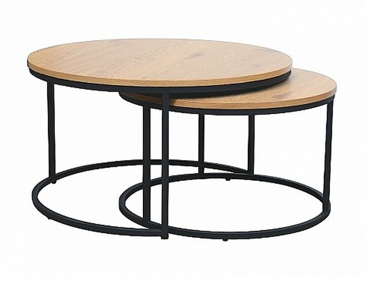 Sada dvou konferenčních stolků ATLANTA obsahuje stůl s průměrem 80 cma výškou 45 cm a menší stůl s průměrem 60 cm a výškou 40 cm. Deskastolků je vyrobena z lamina, což zaručuje pevnost a snadnou údržbu, a rámje kovový pro stabilitu. Tyto stoly se hodí do moderního obývacího pokoje ajsou praktickým řešením pro odkládání věcí.