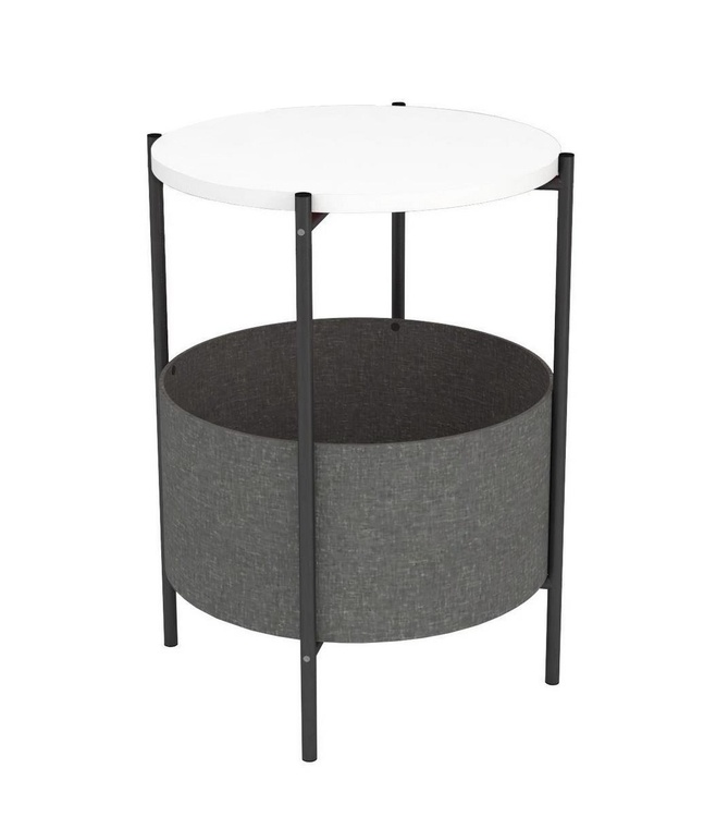 Kulatý konferenční stolek je z kovového rámu v matné černé barvě a horní deska je vyrobena z kvalitní LTD desky. Barevné provedení horní desky je matná bílá. Praktický košík na odkládání věcí je vyrobený z látky a navržený tak, aby bylo možné jej vyjmout a vyprat. Výška košíku je 21,5 cm a... více informací o zboží