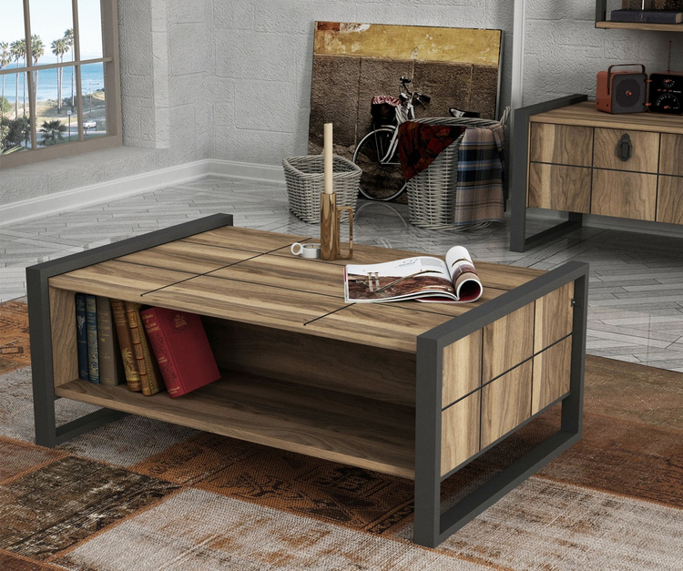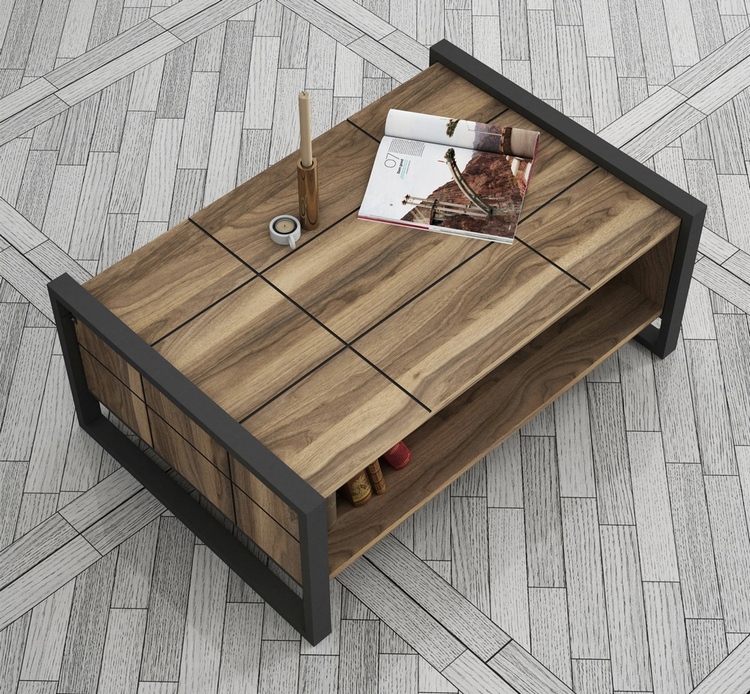 Konferenční stolek je vyroben z kvalitního lamina o tl.18 mm hraněné PVC páskou, odolného proti poškrábání v barvě vlašský ořech. Stolek je vsazen do kovových rámů, které slouží jako nohy stolu. Dodáváme v demontovaném stavu.CASA 28043