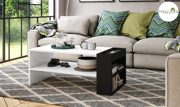 Tradiční konferenční stolek působící nejen svou jemnou elegancí, ale i praktičností. Materiál je z 18 mm LTD. Stolek obsahuje na jedné straně praktický regál pro různé předměty. Barevné provedení je Konferenční stolek s regálem NEFRI 100×55 cm matná bílá/matná černá. Dodáváme v demontovaném stavu.