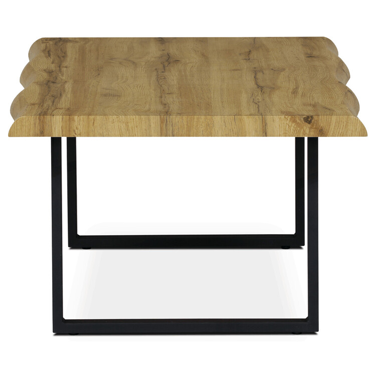 Tento konferenční stolek, vyrobený uznávanou značkou Autronic, je ztělesněním moderního průmyslového designu a kombinuje přírodní dubovou povrchovou úpravu desky z MDF s elegantní sofistikovaností černých kovových nohou. Jeho atypický tvar horní desky nejenže vyniká estetikou, ale také vnáší prvek intriky do každé místnosti, kterou zdobí, takže je ideálním středobodem kanceláří, konferenčních prostor, jídelen nebo obývacích pokojů.Praktičnost stolu vyniká díky odolné konstrukci z MDF a snadno udržovatelnému povrchu s dubovým dekorem, takže nabízí firmám i rodinám spolehlivý kus nábytku, který odolá zkoušce času a každodennímu používání. Jeho design upřednostňuje funkčnost i styl a slibuje nejen plochu pro vaše nezbytnosti, ale i výrazný kousek, který doplní každý interiér.Závazek společnosti Autronic k dokonalosti je patrný v každém aspektu tohoto konferenčního stolku, od jeho robustních kovových nohou, které zajišťují stabilitu, až po jeho stylový a zároveň univerzální vzhled. Ať už podporuje temperamentní diskuse ve firemním prostředí nebo uchovává útulné nápoje v domácím prostředí, tento stolek se ukáže být nepostradatelným doplňkem každého prostoru, který hledá luxus i praktičnost.