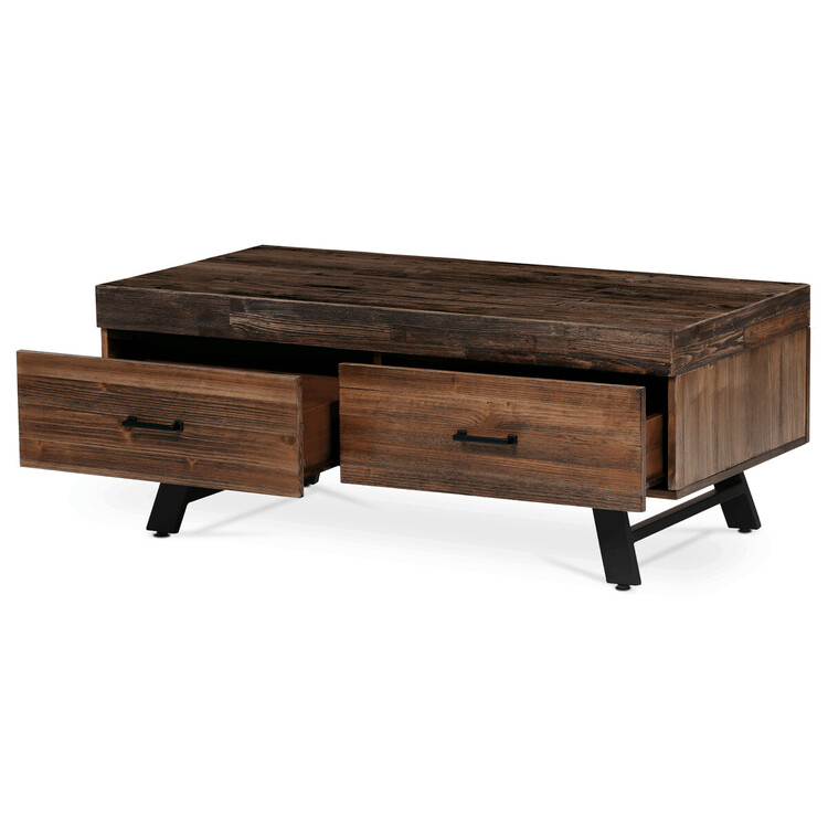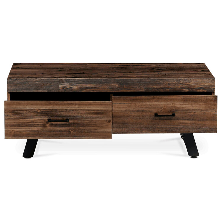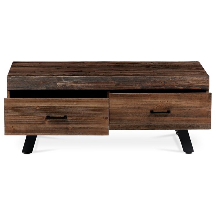 Precizně vyrobený konferenční stolek Autronic v industriálním stylu spojuje syrovou krásu masivního dřeva s pevností kovových nohou a vytváří tak kousek, který je nepopiratelně moderní a zároveň hřejivě příjemný. Horní deska zdobená dekorem starého dřeva vyniká sytým hnědým odstínem, který dodá každému obývacímu pokoji, kancelářskému salonku nebo konferenčnímu prostoru nádech nadčasové elegance. Tento stůl není jen výrazným kouskem, ale symbolem stylu skloubeného s praktičností.Pečlivý design zahrnuje integrovaný úložný prostor pod jeho robustní obdélníkovou plochou – prvek, který bude pro firmy i rodiny neuvěřitelně užitečný. Ať už jde o ukládání časopisů, dálkových ovladačů nebo kancelářských potřeb, funkčnost tohoto stolku zajistí, že vaše prostory zůstanou bez nepořádku a zároveň si zachovají estetický vzhled.Konferenční stolek Autronic stojí na čtyřech elegantních černých kovových nohách, které bez námahy podpírají desku z masivního dřeva a poskytují robustní základnu, jež slibuje dlouhou životnost. Tato kombinace materiálů nabízí nejen odolnost, ale také vnáší prvek industriální elegance do každého prostředí, které ozdobí. Tento kousek, který se snadno čistí a udržuje, je příkladem toho, jak se funkčnost může hladce protnout se špičkovým designem a vytvořit nábytek, který je stejně praktický jako stylový.