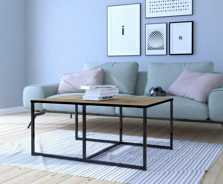 Konferenční stolek barvy dub wotan. Horní deska je vyrobena z LTD, nohy kovové, barva černá. Dodáváme v demontovaném stavu.CASA 85016