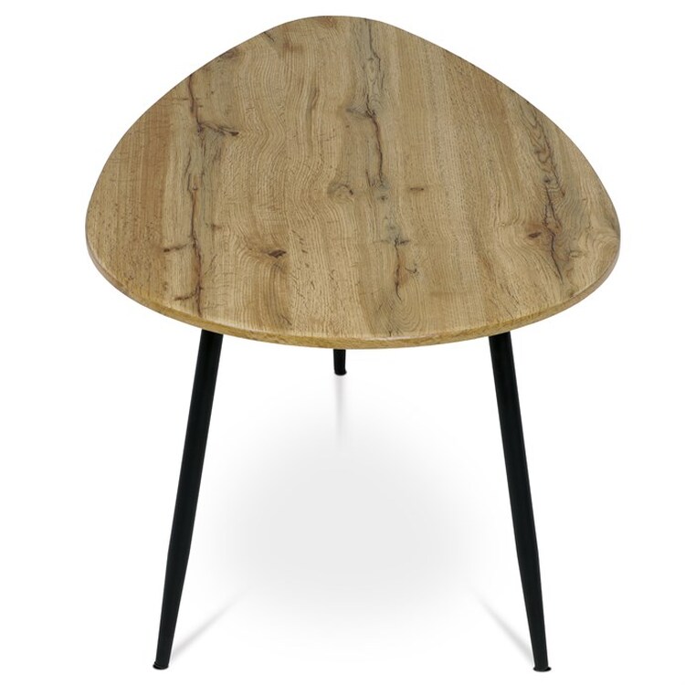 Vylepšete atmosféru své zasedací místnosti s naším praktickým konferenčním stolem Autronic, který je příkladem vysoce kvalitního zpracování a vytříbeného stylu. Tento stůl, oděný do sytě hnědého odstínu odvozeného z dekoru „divoký dub“, působí výrazným dojmem a zároveň přináší industriální estetiku. Atypický tvar horní desky v kombinaci s materiálem MDF nabízí odolnost s nádechem uměleckého vkusu.Každý detail na tomto kusu nábytku odráží snahu společnosti Autronic o styl a funkčnost. Stůl spočívá na kovových nohách ve výrazné černé barvě, které dodávají kontrastu, a vykazuje tak rafinovanost a zároveň slibuje stabilitu. Jedinečná podnož s třemi nohami nejenže dodává stolu atmosféru netradičního designu, ale také zajišťuje dostatek prostoru pro nohy pro maximální pohodlí.Tento boční stolek slibuje více než jen funkčnost; spojuje ohromující vizuální stránku s praktičností a je vyroben tak, aby vydržel a udělal dojem. Přitažlivý dekor dubové desky se bez námahy kombinuje s různými motivy, a staví ho tak do pozice univerzálního doplňku vaší kanceláře nebo domácnosti. Volbou společnosti Autronic se rozhodujete pro charakteristickou kombinaci jedinečnosti a kvality, která odolá zkoušce času.