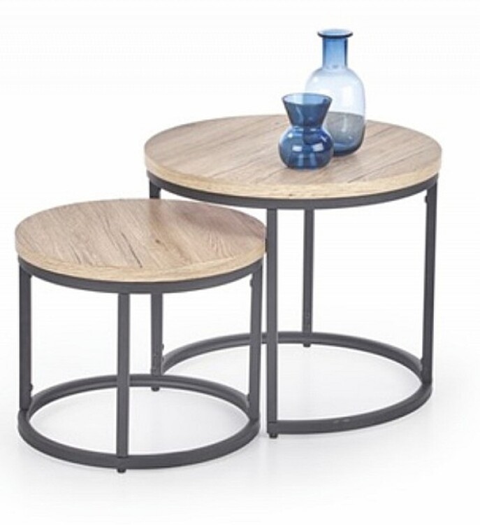 Konferenční stůl OREO je praktickým a stylovým doplňkem do každéhoobývacího pokoje. Tato sestava dvou stolků kombinuje kovovou konstrukcis MDF deskou v dekoru dřeva, což jí dodává moderní vzhled. Menšístolek má průměr 43 cm a výšku 35 cm, zatímco větší stolek máprůměr 53 cm... více informací o zboží
