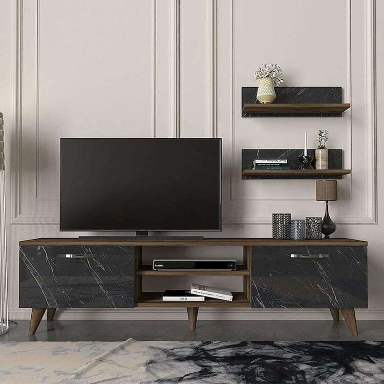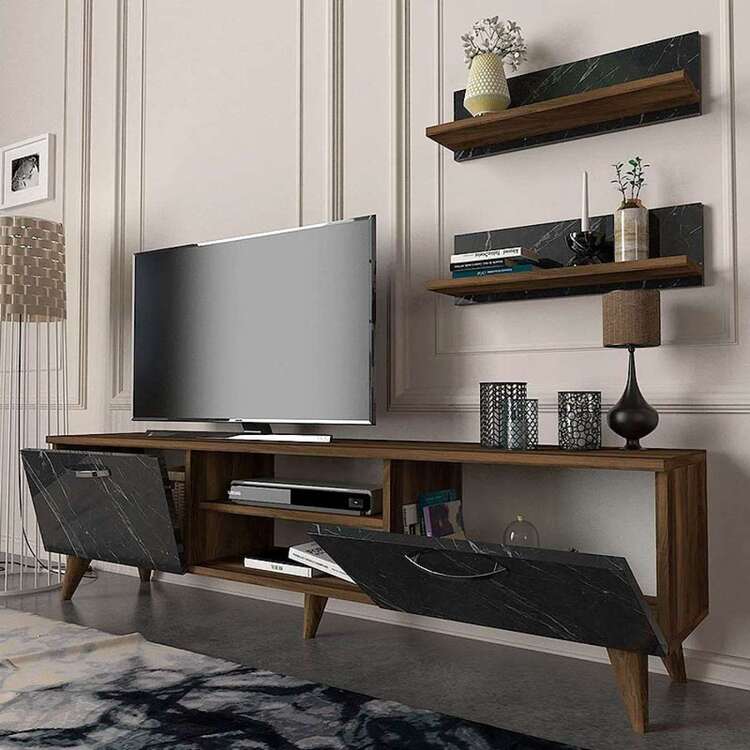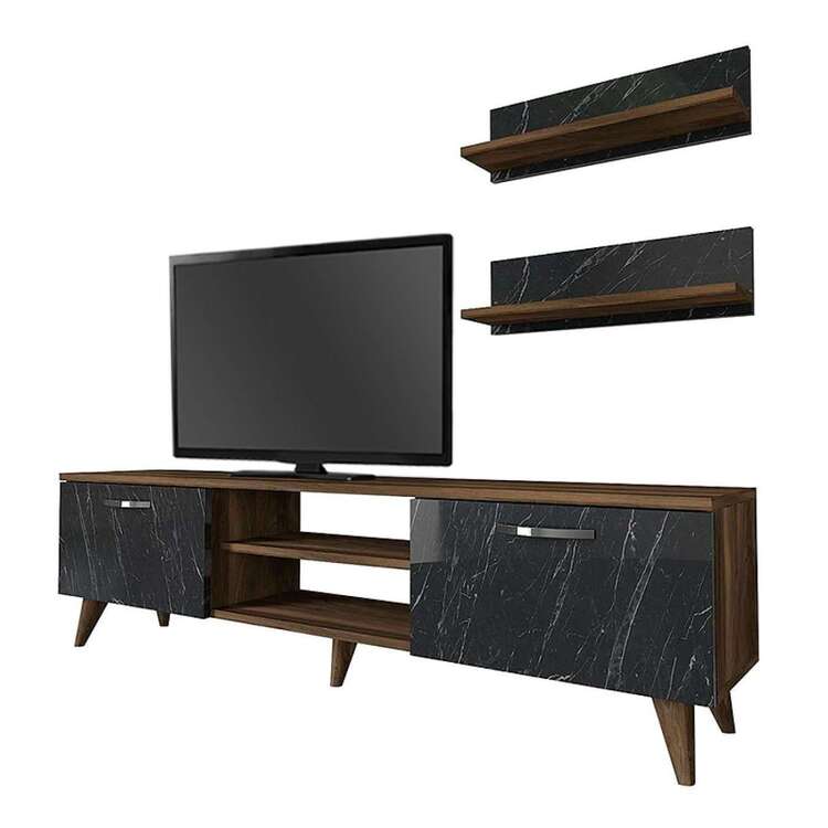 Objevte luxusní obývací stěnu, která spojuje eleganci ořechového dřeva s noblesou mramoru. Tato sofistikovaná sestava je navržena tak, aby zdůraznila rafinovanost a přepych vašeho obývacího pokoje.