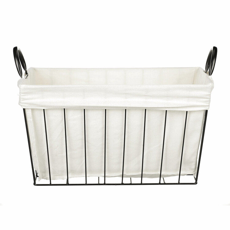 Udržujte si doma uspořádaný a čistý prostor s naším stylovým kovovým košem. Je nejen praktickým řešením pro uložení prádla či různých předmětů, které je potřeba někam dát, ale také elegantním doplňkem v místnosti. Kovový koš je po stranách vybaven uchy, které nejen dodávají estetický prvek, ale zároveň usnadňují jeho snadné přenášení a manipulaci i s jeho obsahem. Je dostatečně prostorný a uvnitř se nachází pevná a odolná látka, která vytváří jemný polštář pro vaše cenné věci. Je důležitou součástí produktu i proto, že kovovou konstrukcí nepropadnou žádné drobnější předměty. Látka je navíc snadno vyjímatelná a dá se jednoduše vyprat, což zajišťuje snadné udržování čistoty a hygieny.