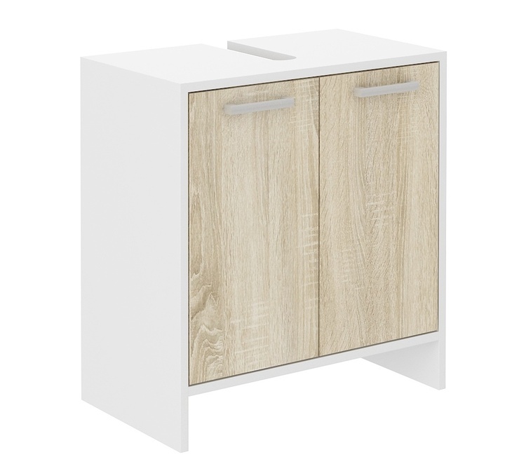 Sestava do koupelen, stylová a zároveň vhodná do moderních interiérů. Korpus i dvířka jsou vyrobeny z desky LTD 16 mm potažené PVC folií v barvě bílá/dvířka v dub sonoma. Zadní strana je ze sololitu. Úchyty jsou plastové. Skládá se (šxvxh) – 2-dveřová skříňka pod umyvadlo (60×60,5×32,6 cm),... více informací o zboží
