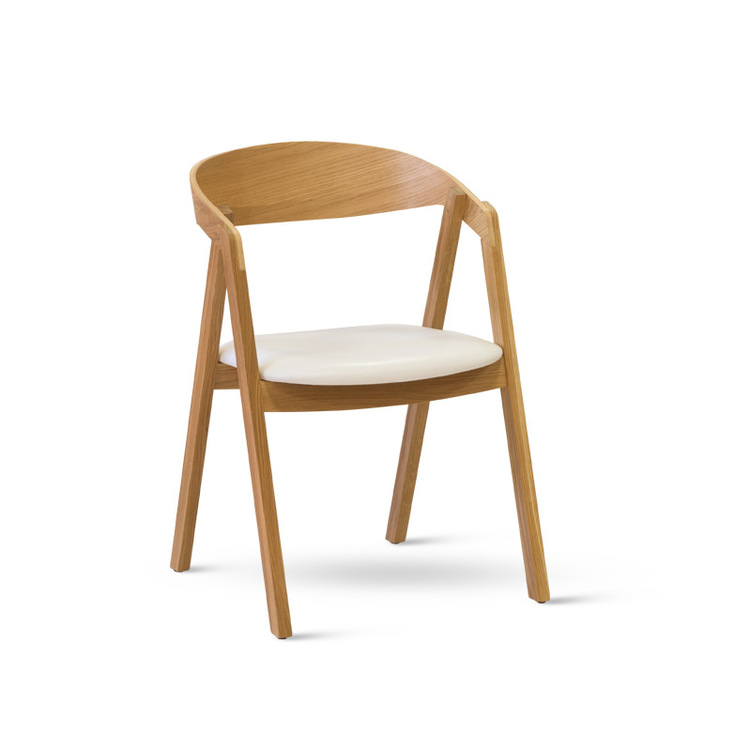 Křesílko k jídelnímu stolu z dubového masivu. Sedák čalouněný – výběr z 86 zakázkových látek. Pohodlné sezení, kvalitní provedení a ušlechtilý materiál spolu s cenou tvoří celek hodný pozornosti.