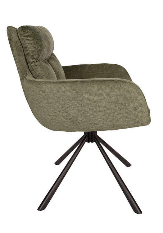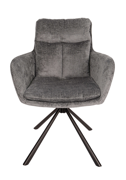 Celočalouněné křesílko na kovové podnoži, otočné uložení s návratem do výchozí pozice.