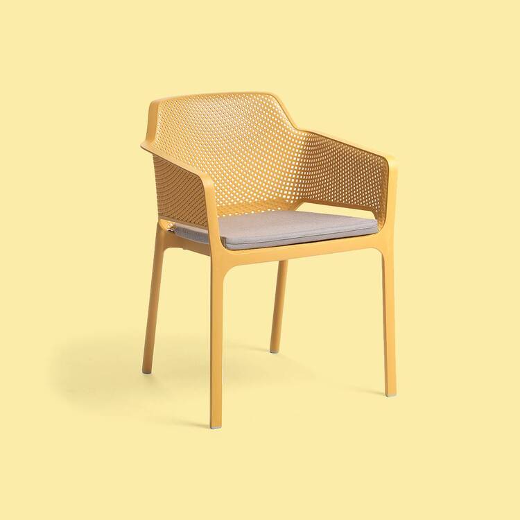 Polštář pro křesílko NET. Provedení s látkou odolnou proti ušpinění. barva grigio sunbrella je navíc voděodolná, akrylová látka.