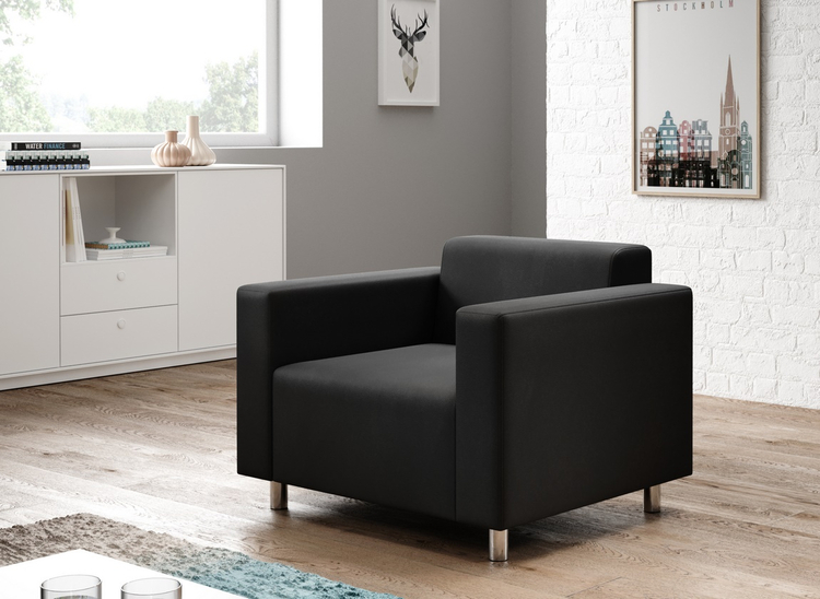 Praktické stylové křeslo vhodné do menších prostorů. Pohodlné sezení zaručují vlnovcové pružiny spolu s PUR pěnou. Výška sedáku je 40 cm, hloubka sedu je 54 cm. Nosnost křesla je 80 kg. Barevné provedení – Cayene 1114 (černá ekokůže).CASA 41009