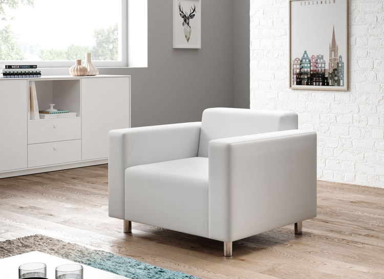 Praktické stylové křeslo vhodné do menších prostorů. Pohodlné sezení zaručují vlnovcové pružiny spolu s PUR pěnou. Výška sedáku je 40 cm, hloubka sedu je 54 cm. Nosnost křesla je 80 kg. Barevné provedení – Cayene 1115 (bílá ekokůže).CASA 41009