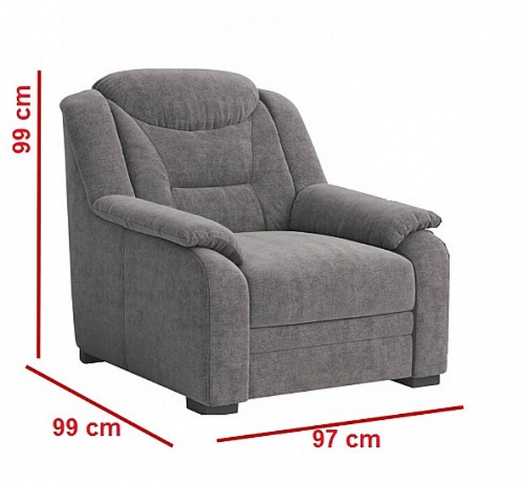 křeslo je široké 97, vysoké 99 a hluboké 99 centimetrů.