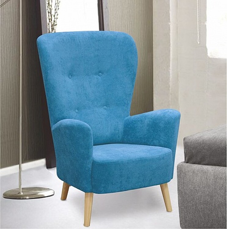 Příjemnému retro stylu odpočinkového křesla jménem PAULO nahrávánejen celkový oblý design, ale taky opěrky s kulatými knoflíkyv komfortně vysoké opěrce zad a štíhlé, ale stabilnídřevěné nohy.