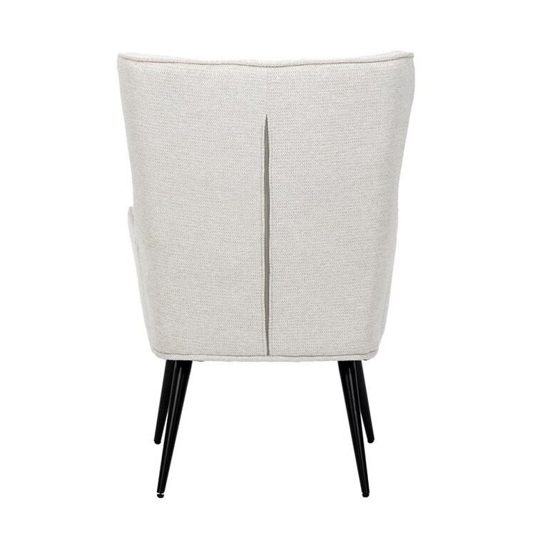 Křeslo s béžovým potahem z voděodolné látky kombinuje pohodlí s praktickým využitím v interiéru. Masivní nohy z kaučukovníku doplněné o kovové prvky zajišťují stabilitu a dlouhou životnost. Designové prošití na opěradle a sedáku podtrhuje moderní vzhled a zároveň přispívá k pevnosti čalounění. Područky jsou integrované do celkového tvaru křesla, což zvyšuje komfort při sezení. Díky použitým materiálům je křeslo vhodné pro každodenní relaxaci s důrazem na snadnou údržbu a odolnost vůči vlhkosti.
