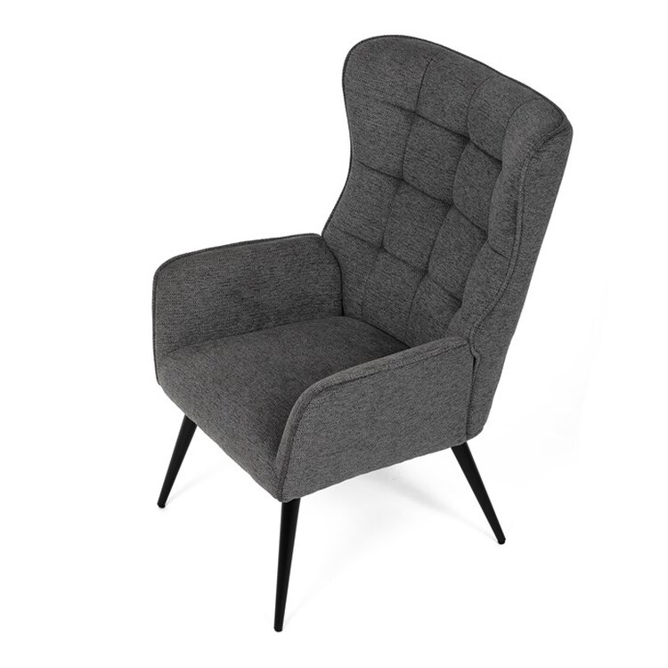 Křeslo s označením AK-315 GREY2 nabízí pohodlné sezení díky čalounění z šedé voděodolné látky, která usnadňuje údržbu a zvyšuje odolnost proti polití. Pevné kovové nohy zajišťují stabilitu a dlouhou životnost, zatímco masivní rám z kaučukovníku přispívá k celkové pevnosti a robustnosti. Designové prošití na opěradle dodává křeslu moderní a stylový vzhled, který se hodí do různých interiérů. Křeslo je vybaveno pevnými područi, které zvyšují komfort při sezení. Díky svým rozměrům a konstrukci je vhodné pro relaxaci v obývacím pokoji, kanceláři nebo recepci.