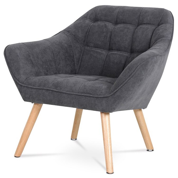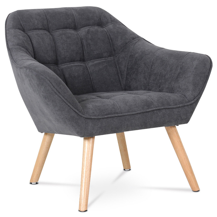 Křeslo s tmavě šedým látkovým potahem nabízí pohodlné sezení díky měkkému polstrování a designovému prošití, které dodává celku výrazný charakter. Masivní nohy z kaučukovníku zajišťují stabilitu a dlouhou životnost, přičemž jejich přírodní odstín kontrastuje s tmavým odstínem čalounění. Široké opěradlo a područky jsou ergonomicky tvarované pro maximální komfort během odpočinku. Křeslo je vhodné do moderních i klasických interiérů, kde vynikne jako stylový a zároveň praktický doplněk. Jeho pevné provedení a kvalitní materiály zaručují spolehlivost při každodenním používání.