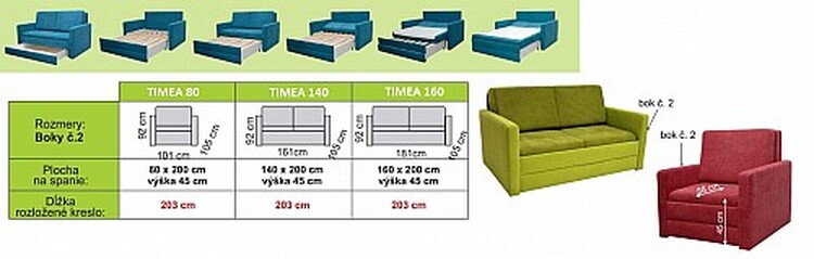 Pokud gauč TIMEA zůstane složený, jeho rozměry budou