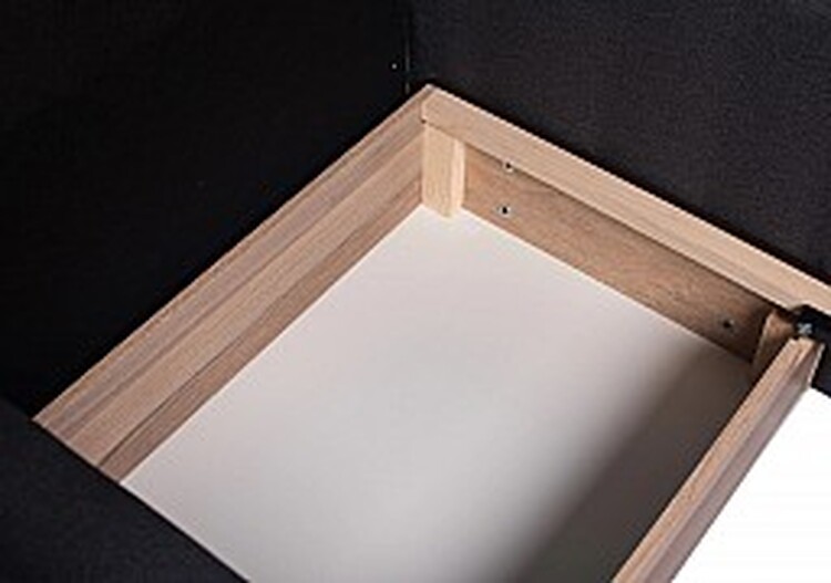 Úložný prostor: Integrovaný box na lůžkoviny nebo deky, nenápadně