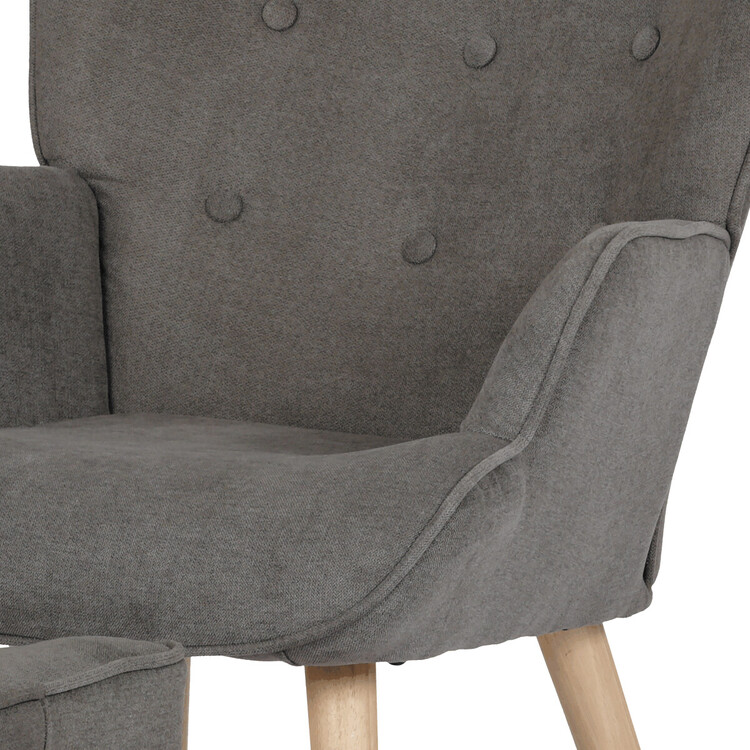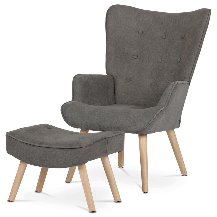 Křeslo ušák s podnožkou nabízí komfortní posezení díky širokému sedáku a vysokému opěradlu s charakteristickými křídly, která poskytují oporu hlavy a ramenům. Potah je z hnědé látky s jemnou strukturou, která je příjemná na dotek a snadno se udržuje. Masivní nohy z kaučukovníku zajišťují stabilitu a dlouhou životnost nábytku. Součástí je také samostatný taburet s odpovídajícím potahem a dřevěnými nohami, který umožňuje pohodlné opření nohou. Křeslo je ideální pro relaxaci v obývacím pokoji nebo čtecím koutě.