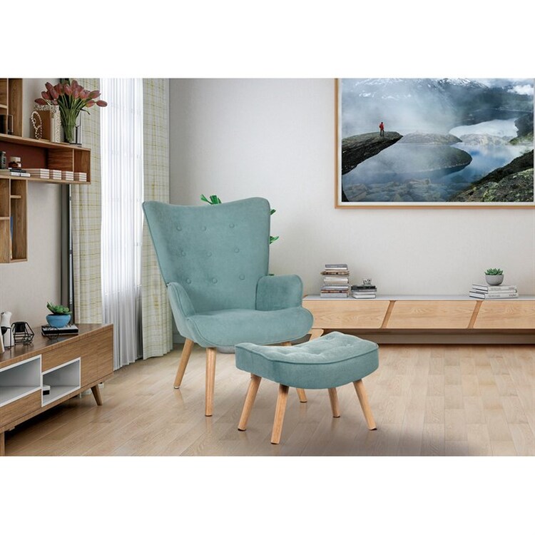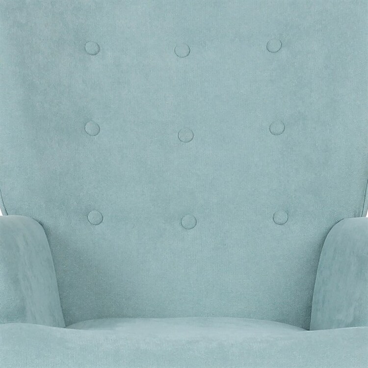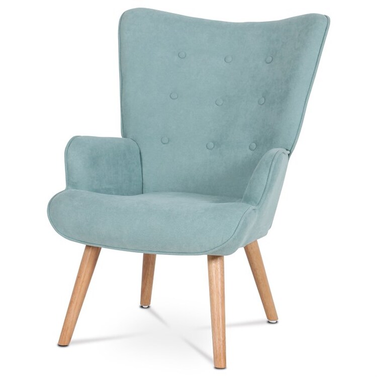 Křeslo ušák s podnožkou v světle modrém provedení nabízí pohodlné posezení s výrazným retro nádechem. Potah je z příjemné látky, která zajišťuje komfort a snadnou údržbu, zatímco pevné nohy z masivního kaučukovníku dodávají stabilitu a dlouhou životnost. Vyvýšené opěradlo s charakteristickými křídly a prošíváním s knoflíky poskytuje oporu pro záda i hlavu, což zvyšuje relaxační efekt. Součástí je také taburet se stejným potahem a konstrukcí, který umožňuje pohodlné opření nohou. Křeslo je vhodné do obývacích pokojů, čítáren nebo relaxačních koutů, kde vynikne jeho design i funkčnost.