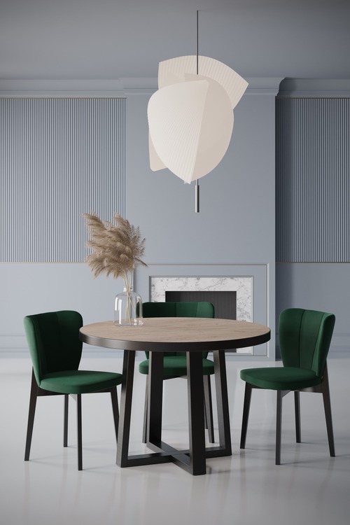 Kvalitní čalouněná židle s masivní dřevěnou podnoží.