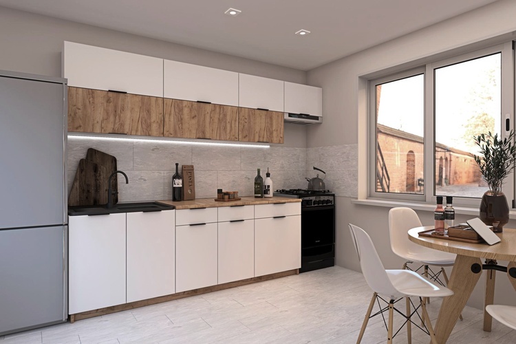 Moderní a levná kuchyně. Tato kuchyně je navržena tak, že skříňky se