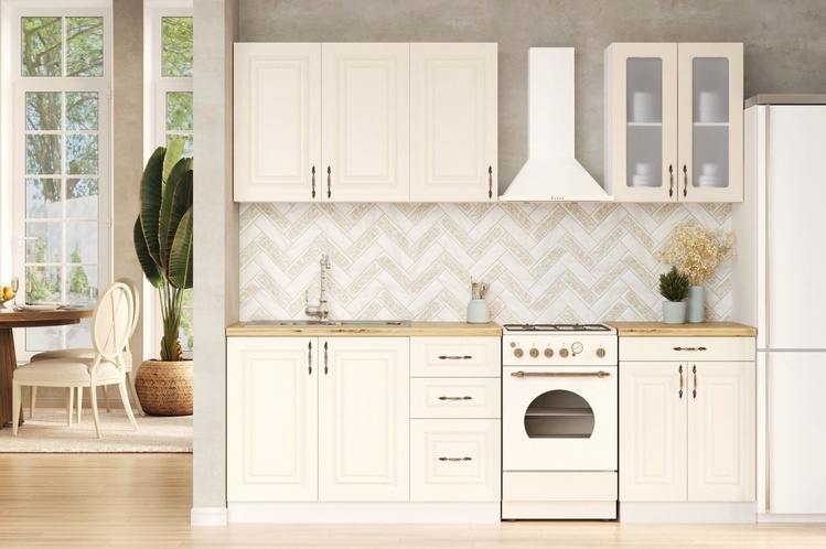 Tato moderní kuchyně kombinuje praktičnost a jednoduchý design. Skříňky se dají poskládat v libovolném pořadí a to Vám umožní si sestavit kuchyni podle svých představ. Korpus a sokl jsou z kvalitní LTD desky v barvě bílá nymphea alba (bílá mat),dvířka jsou MDF v barvě vanilka supermat. Úchyty... více informací o zboží