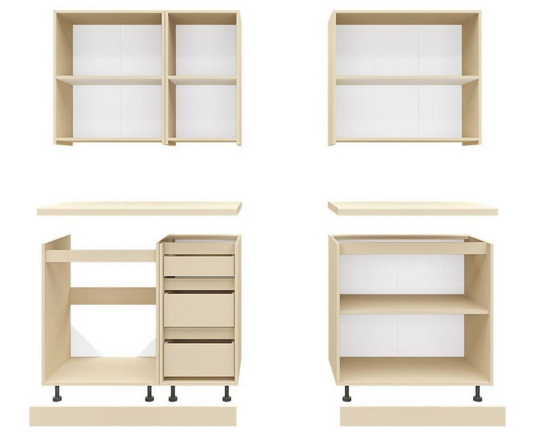 Kuchyně se prodává jako sestava, dokoupení skříněk není možné. Pracovní deska, spotřebiče, dřez a digestoř nejsou součástí kuchyně. Dřez a pracovní desky k zakoupení najdete v naší další nabídce. Dodáváme v demontovaném stavu.CASA 19009