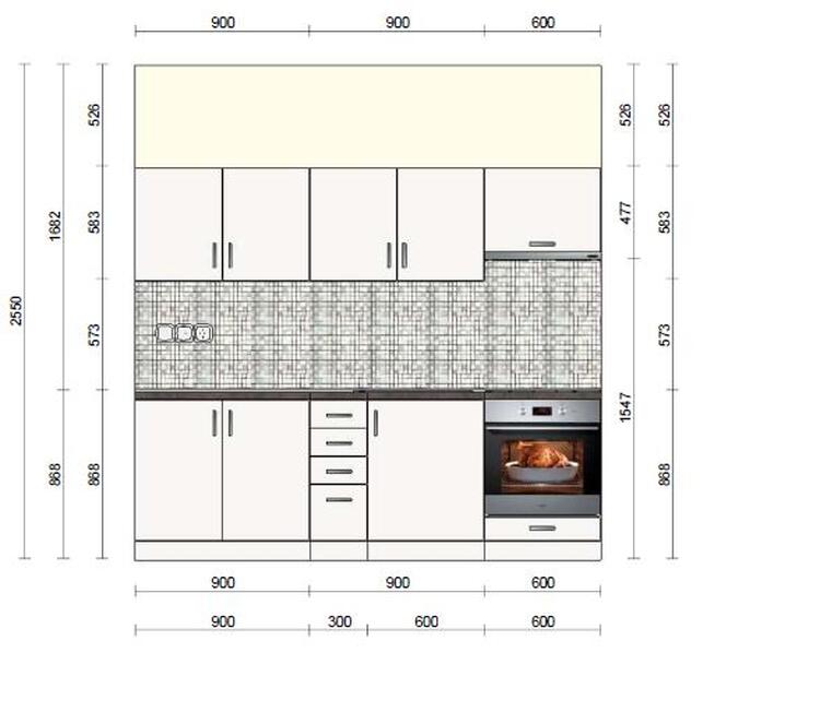 Kuchyňská linka Optima 240 cm v sestavě pro vestavný sporák a <a