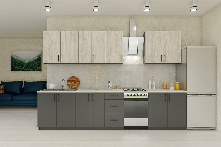 Kuchyňská linka 260 v jednoduchém moderním stylu.Materiál LTD, korpus je v barvě grafit, dvířka jsou v barvě artwood/antracit, úchyty jsou v barvě černé.