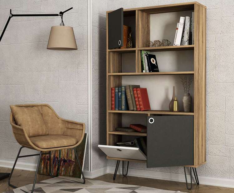 Regál se pyšní svým moderním designem a kombinací antracitové a ořechové barvy, která přináší do interiéru eleganci a styl. Čtyři pevné police a tři skříňky poskytují dostatek úložného prostoru pro vaše knihy, dekorace či kancelářské potřeby. Robustní LTD materiál o tloušťce 18 mm zajišťuje dlouhou životnost a stabilitu tohoto regálu.