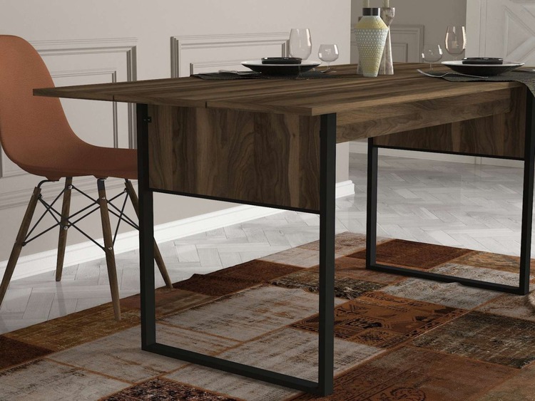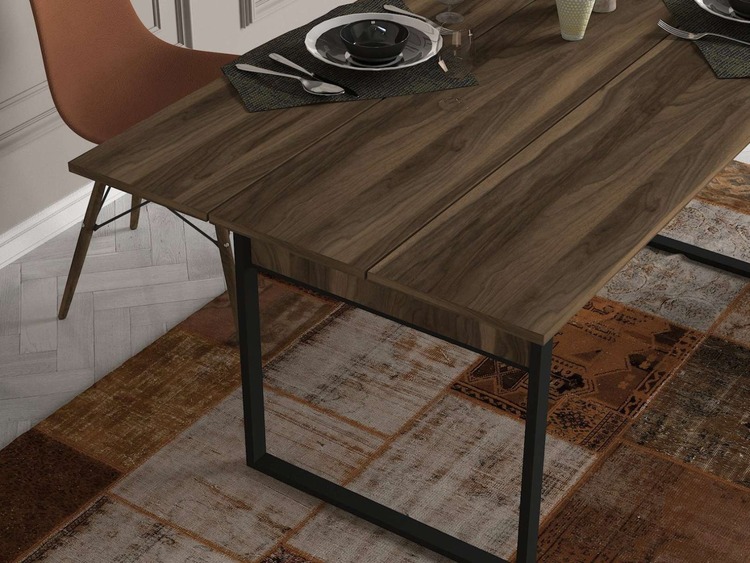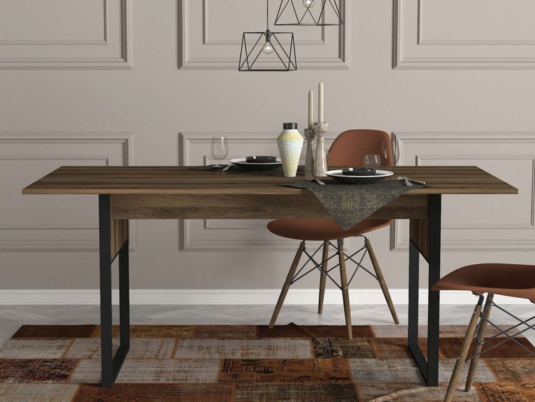 Jídelní stůl vyniká svým industriálním designem v ořechové barvě, který dodá každému interiéru moderní a sofistikovaný vzhled. Díky svému obdélníkovému tvaru a velkorysým rozměrům je ideální pro pohodlné posezení až osmi lidí.