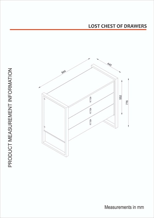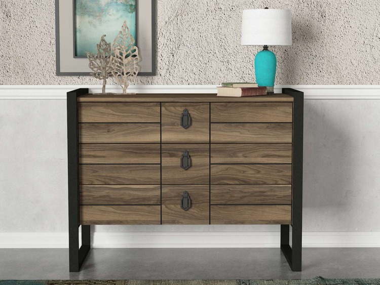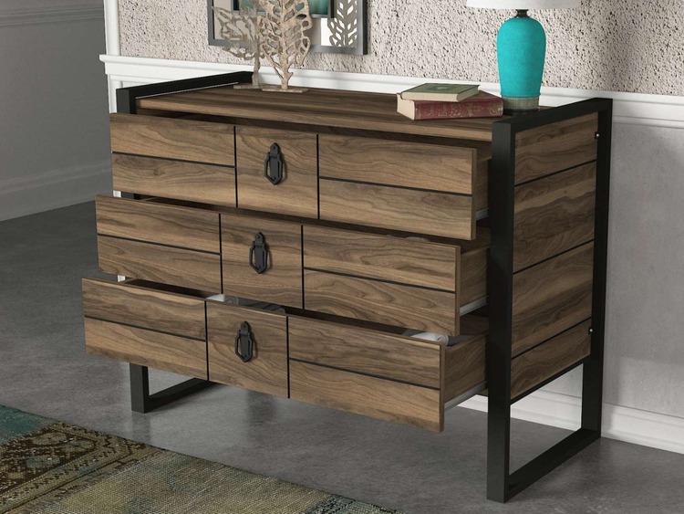 Díky materiálu LTD o tloušťce 18 mm a kovovým prvkům je tato komoda