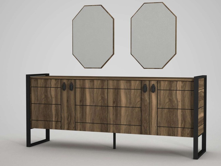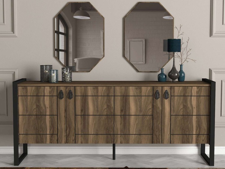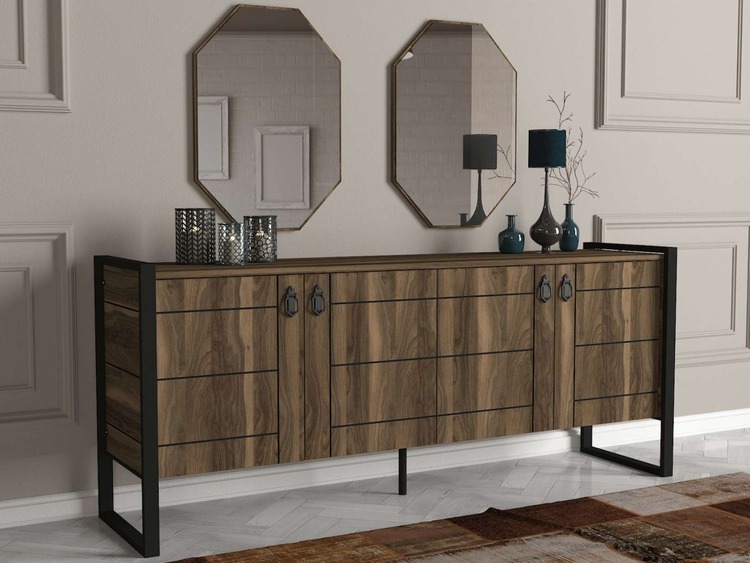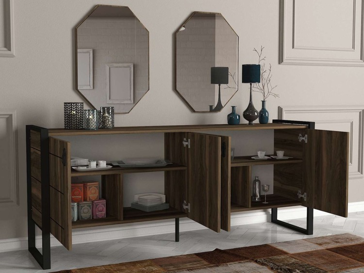 Komoda je vyrobena z kvalitního LTD materiálu, kovu a skla s tloušťkou 18 mm, což zajišťuje její pevnost a dlouhou životnost. Elegantní ořechová barva dodává komodě moderní a sofistikovaný vzhled, který se hodí do jakéhokoliv interiéru. Komoda je vybavena čtyřmi dvířky, které poskytují dostatek úložného prostoru pro vaše potřeby.