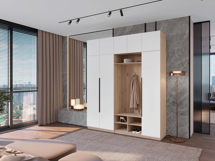 poskytuje kompletní řešení pro uložení oblečení i obuvi a vytváří uklizený, reprezentativní vstup do vašeho domova.