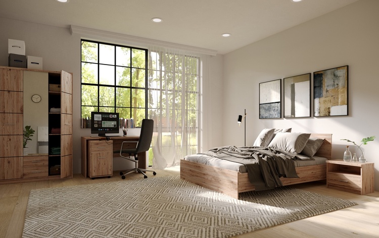 Ložnicová sestava je vyrobena z kvalitního LTD v barvě dub san remo světlý s výraznou kresbou dřeva. Kolekce je navržena v minimalistickém stylu as radostí si vychutnáte zvláštní kouzlo a pohodlí takto vytvořeného nábytku. Sestava obsahuje: šatní skříň 3-dveřová se 2 zásuvkami – (š/v/h) 119/199/54 cm, postel + rošt – (š/v/h) 164/85/205 cm; výška sezení 37 cm a 2 ks noční stolek s 1 zásuvkou – (š/v/h) 53/44/35 cm. Matraci je třeba doobjednat, vhodný rozměr 160 × 200 cm. Jednotlivé díly lze zakoupit zvlášť. Dodáváme v demontovaném stavu.CASA 94007