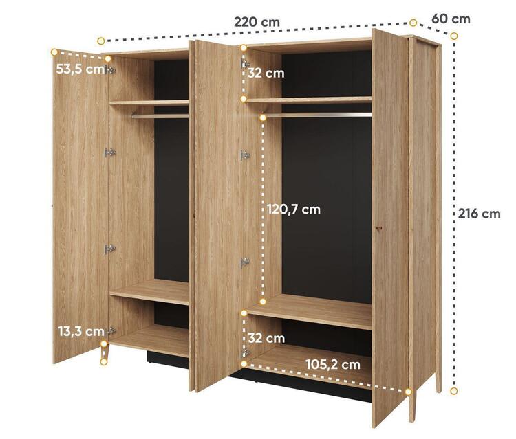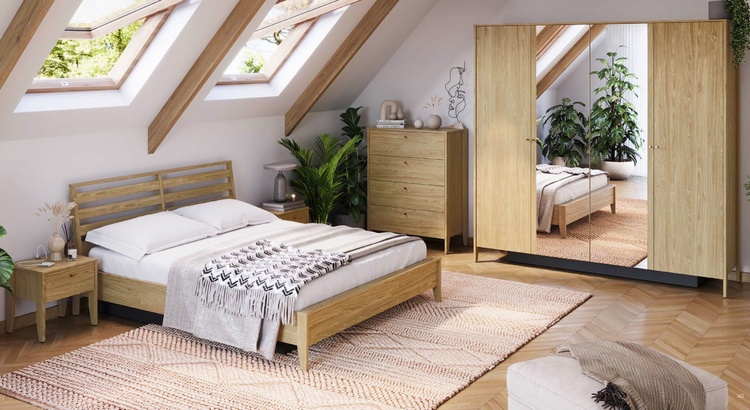 Ložnicová sestava, která obsahuje prostornou skříň, postel s ÚP, komodu se zásuvkami a 2 noční stolky s integrovanými vstupy pro nabíjení (USB a USB-C). Rozměry viz obrázky. Postel s prodyšným čelem a úložným prostorem pod matrací (zvedací laťový rošt) je perfektní volbou pro ty, kteří ocení komfort a praktičnost. Pomocí tohoto úložného prostoru snadno uskladníte ložní prádlo, deky nebo polštáře, čímž šetříte místo ve skříni. Doporučujeme dokoupení polštáře na přední čelo postele pro větší pohodlí. Vhodná matrace k dokoupení je 160×200 cm nebo 2× 80×200 cm. Kolekce je příkladem pohodlí, funkčnosti a nadčasového designu. Každý kus nábytku v této kolekci je vyroben z kvalitních materiálů, které zaručují dlouhou životnost a zároveň vnášejí do vaší ložnice teplý a útulný vzhled. Díky jemným detailům, jako jsou prodyšná čela postelí, praktické úložné prostory, je každý prvek navržen tak, aby byl nejen krásný, ale i maximálně funkční. Elegantní dekor v barvě olejovaného dubu dodávají nábytku přirozený vzhled, který se snadno kombinuje s různými styly. S tímto nábytkem si vytvoříte ložnici, která bude dokonale ladit s vaším životním stylem. Dodáváme v demontovaném stavu.