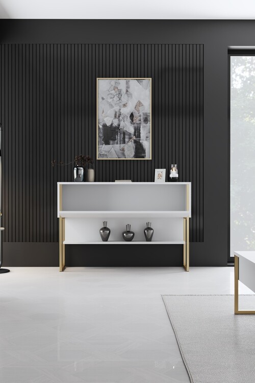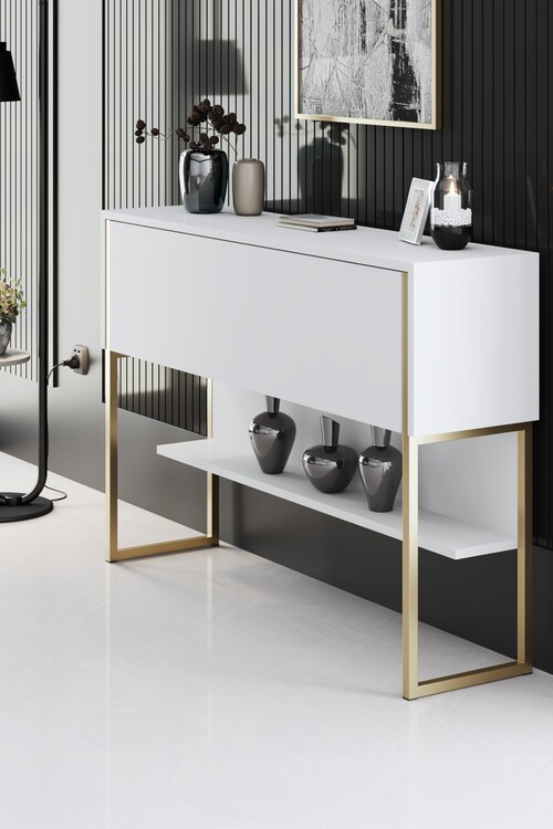 Luxe konzolový stolek se kříňkou, zlatá / bílá