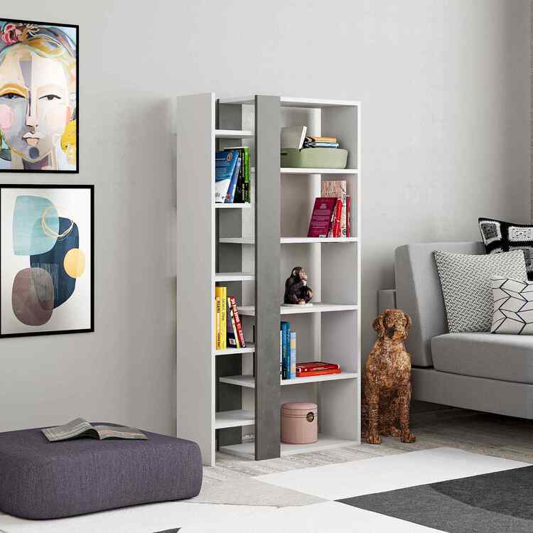 Regál v sobě spojuje moderní design s klasickými prvky. Bílá kombinovaná s retro šedou dodává nábytku jedinečný a čistý vzhled. Čtyři prostorné police nabízí dostatek místa pro uskladnění vašich oblíbených knih, dekorací a dalších předmětů, které chcete mít na očích.
