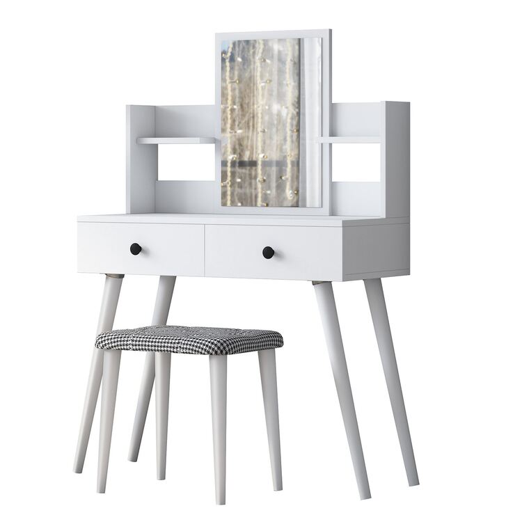 Toaletní stolek je ideálním doplňkem do každé moderní ložnice. Jeho čistý bílý design v kombinaci se skandinávským stylem vytváří harmonickou atmosféru. Praktické vybavení a pohodlná taburetka... více informací o zboží