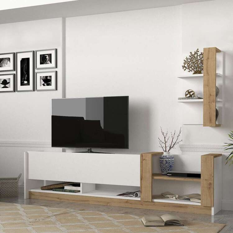 Obývací stěna je ideální volbou pro ty, kteří hledají moderní a funkční nábytek s elegantním a originálním vzhledem. Její kombinace ořechu a vzoru a minimalistický design přinášejí do vašeho domova svěžest a moderní styl, zatímco poskytují dostatek úložného prostoru pro všechny vaše potřeby.