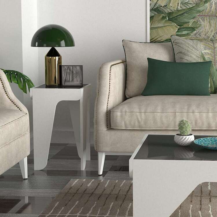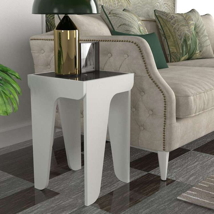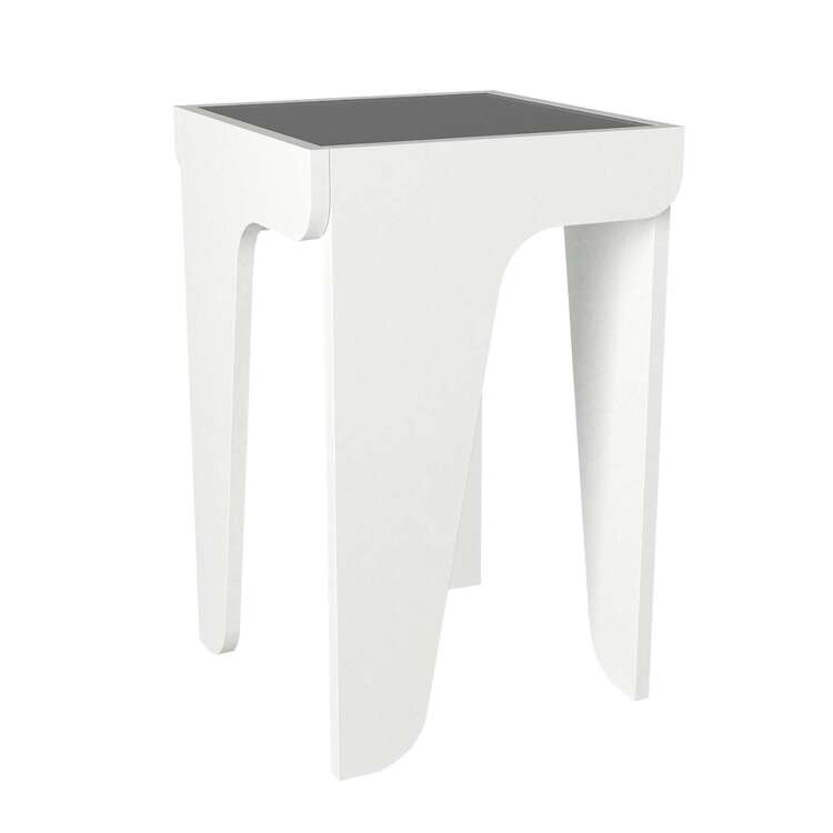 Stolek vyniká svým bílým provedením a čtvercovým tvarem, který je nejen praktický, ale také vizuálně přitažlivý. Skleněné prvky přidávají stolku lehkost a eleganci, zatímco robustní LTD materiál o tloušťce 18 mm zajišťuje pevnost a dlouhou životnost.