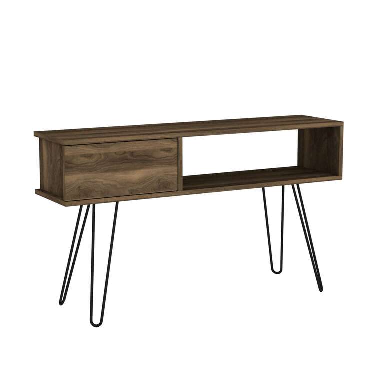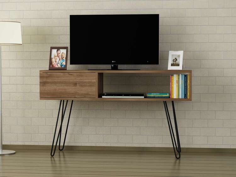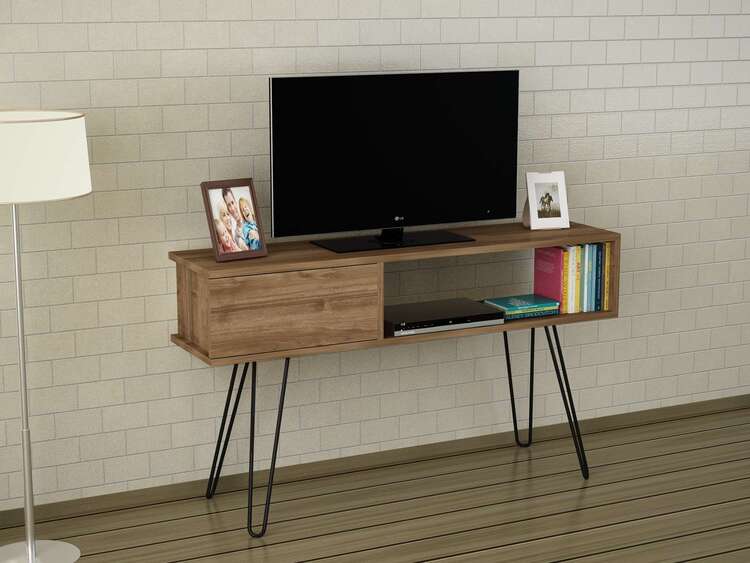 TV stolek je skvělou volbou pro ty, kteří hledají moderní a funkční nábytek s elegantním vzhledem. Jeho ořechová barva a minimalistický design přinášejí do vašeho domova teplo a moderní styl.