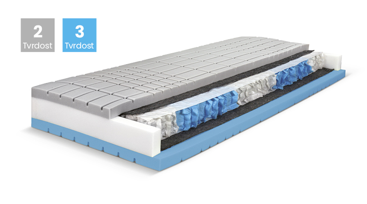 Luxusní matrace s jádrem z taštičkových pružin v kombinaci s vysoce komfortními studenými HR pěnami. Povrch jádra s antidekubitním prořezem slouží jako prevence proti vzniku proleženin. 5zónové taštičkové jádro matrace je složeno z velkého počtu pružin, které jsou samostatně zabaleny do taštičky z netkané textílie a díky tomu každá pružinka dokáže samostatně reagovat na zatížení, čímž je dosaženo optimálních ortopedických vlastností.