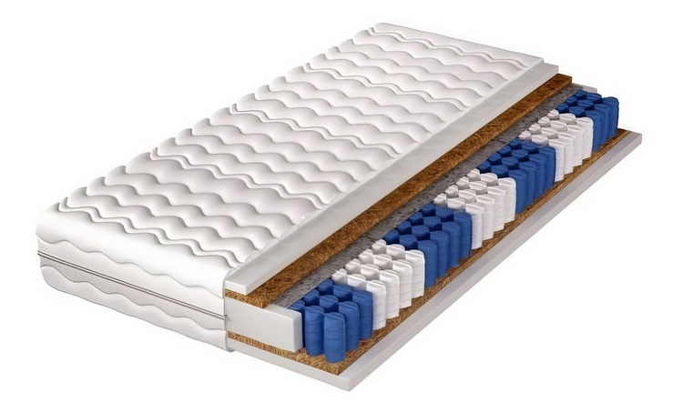 Pružinová matrace 160×200 cm v pratelném snímatelném potahu. Jádro matrace je charakteristické hustě uspořádanými taštičkovými pružinami v množství 262 ks/m2 a 7 zónami tvrdosti, které zajišťují dokonalou oporu těla a komfort odpočinku. Za zmínku stojí funkce taštičkových pružin, které pracují odděleně a reagují jen v místě tlaku. Pokud si tedy na matraci lehnete, dojde ke stlačení pouze těch pružin, na které se vyvíjí tlak. Matrace je z obou stran potažena 1 cm silnou kokosovou deskou a PUR pěnou T25 o síle 2 cm. Kokos se v matracích používá ke zpevnění, zvýšení nosnosti a odolnosti, zároveň je antibakteriální a antialergický. Pomáhá odvádět vlhkost z matrace a udržuje uvnitř suché prostředí. Matrace je hypoalergenní a použití bavlny v potahu matrace podporuje cirkulaci vzduchu a poskytuje dobrou tepelnou izolaci. Je odolná vůči různým druhům tlaku, deformaci a promáčknutí a poskytuje dobrou ventilaci, což ocení lidé s nadměrným pocením. Matrace má označení tvrdosti H5 – extra tvrdá. Výška matrace je +/- 20 cm. Barva pěn se může lišit od vyobrazení.