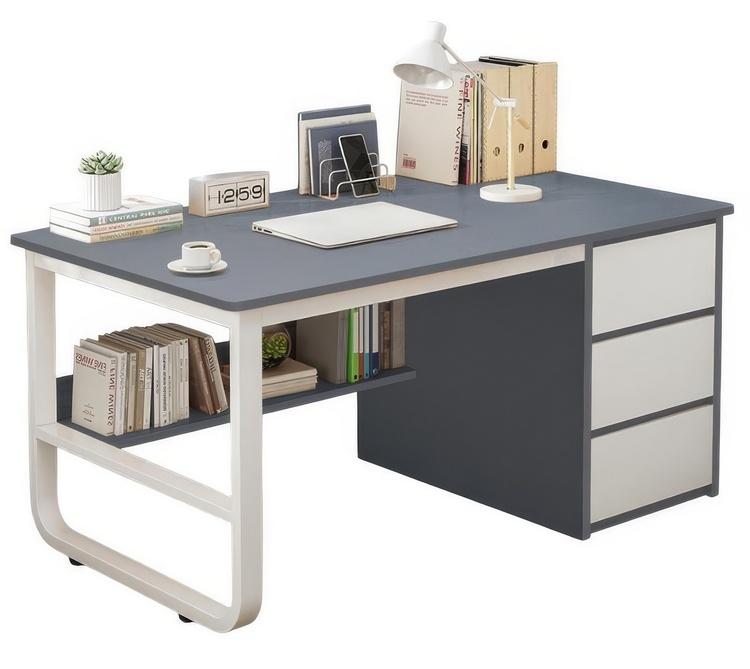 Psací stůl s praktickými šuplíky a jednou policí pod stolem. Police má délku 58 cm a hloubku 15 cm. Stůl nabízí kvalitní zpracování v podobě pevné ocelové konstrukce bílé barvy v kombinaci MDF desky barvy grafit. Zásuvky se nemontují do kolejnic, ale vysouvají se. Rozměr vnitřní části šuplíku je 275×250cm (šxh). Dodáváme v demontovaném stavu.CASA 95170